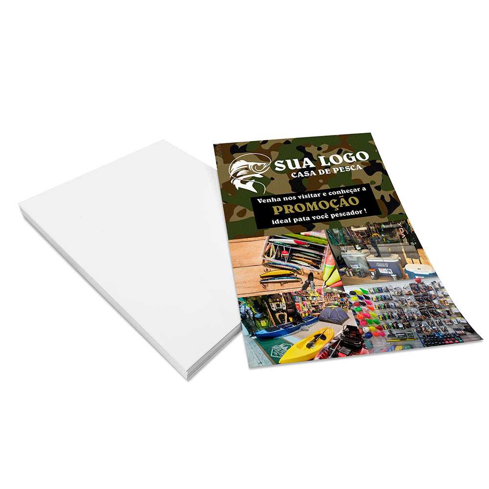 Impressão colorida em CMYK apenas na frente; o verso fica em branco.