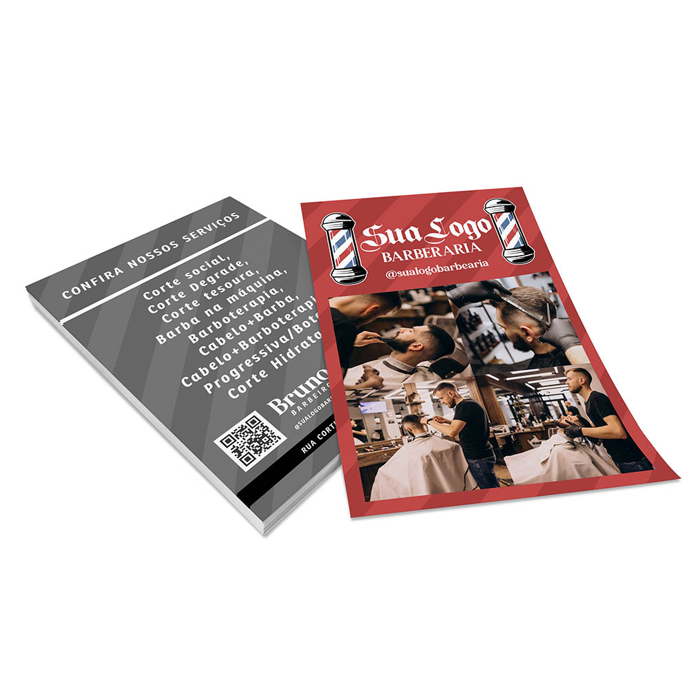 Frente colorida em CMYK e verso impresso só em preto (tons de cinza).
