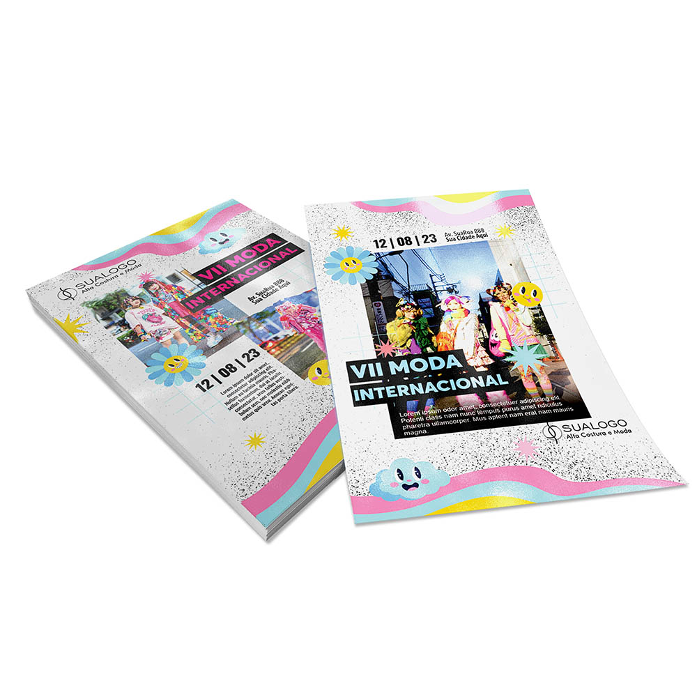 Impressão colorida em CMYK na frente e no verso.