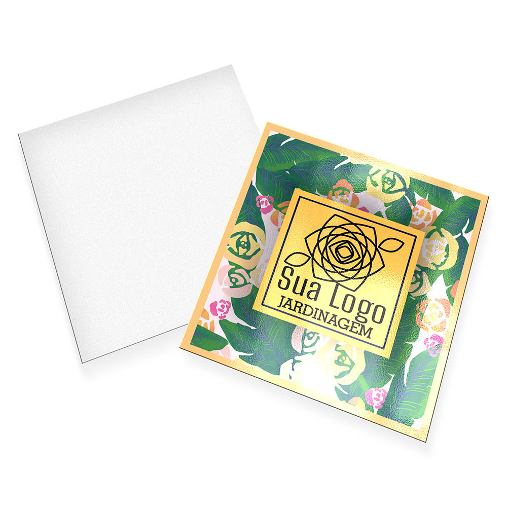 Impressão colorida em CMYK apenas na frente; o verso fica em branco.