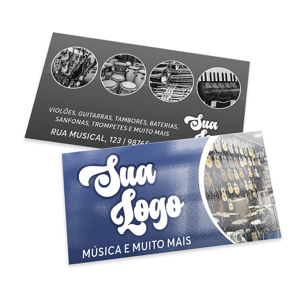 Frente colorida em CMYK e verso impresso só em preto (tons de cinza).
