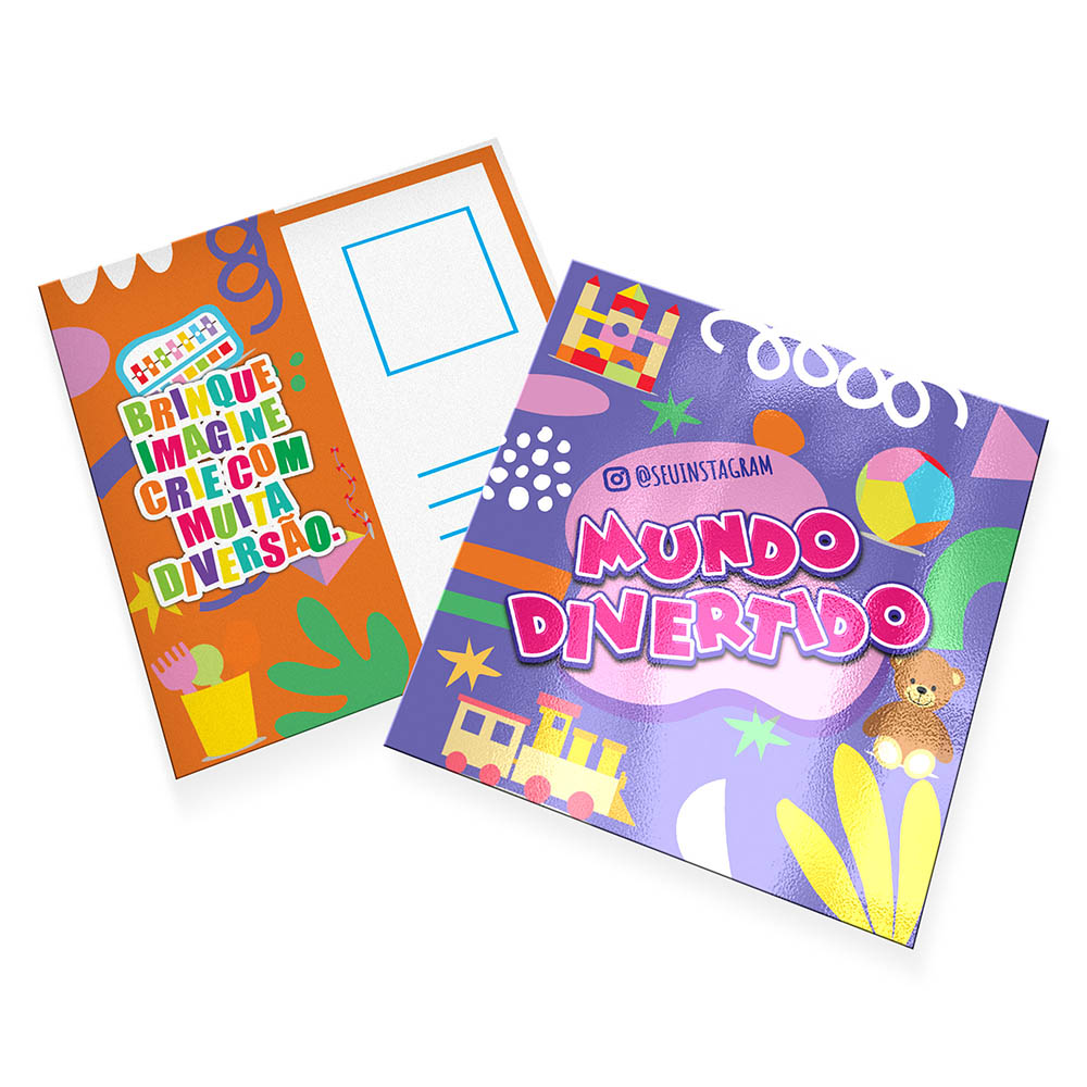 Impressão colorida em CMYK na frente e no verso.
