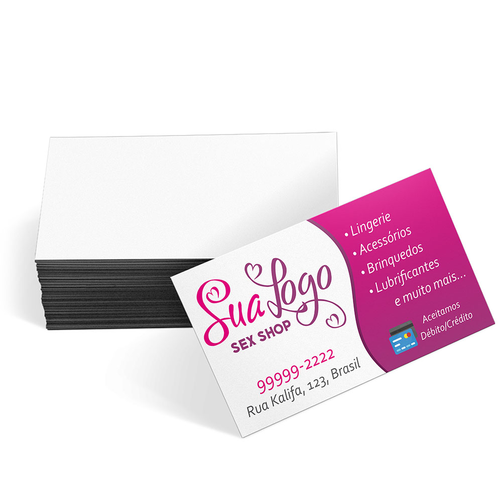 Impressão colorida em CMYK apenas na frente; o verso fica em branco.