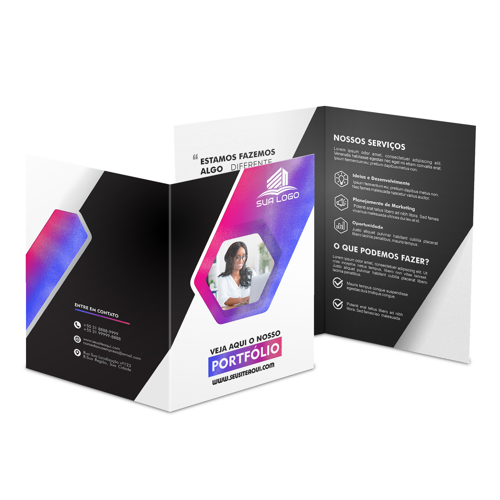 Frente colorida em CMYK e verso impresso só em preto (tons de cinza).
