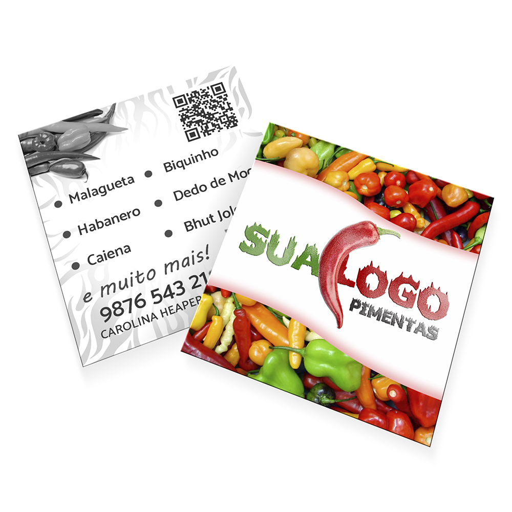 Frente colorida em CMYK e verso impresso só em preto (tons de cinza).