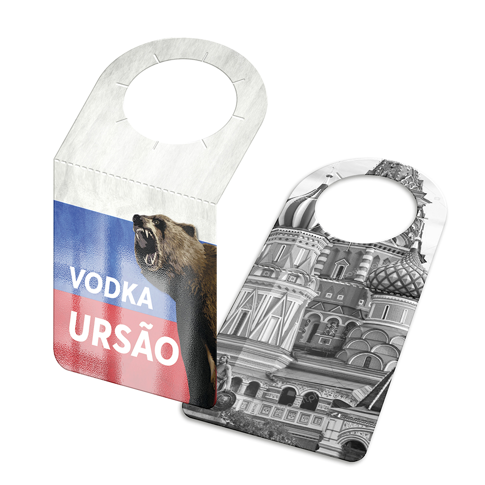 Frente colorida em CMYK e verso impresso só em preto (tons de cinza).