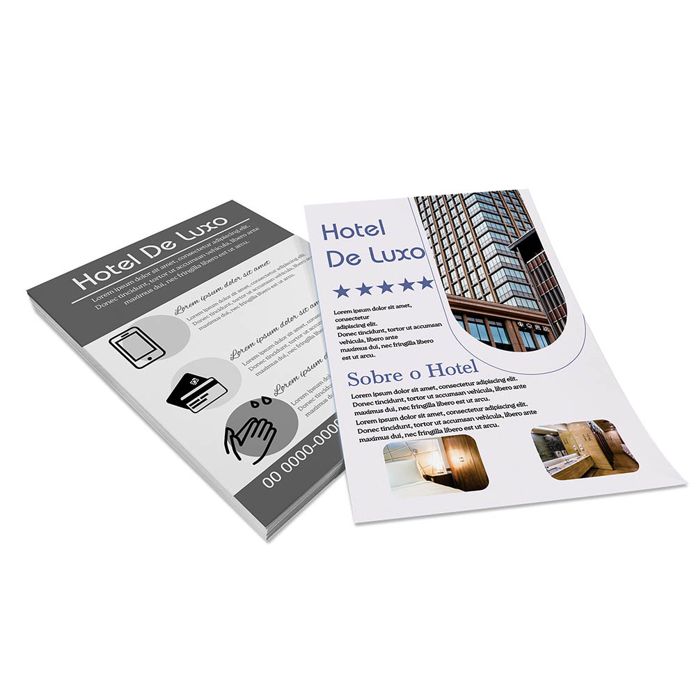 Frente colorida em CMYK e verso impresso só em preto (tons de cinza).