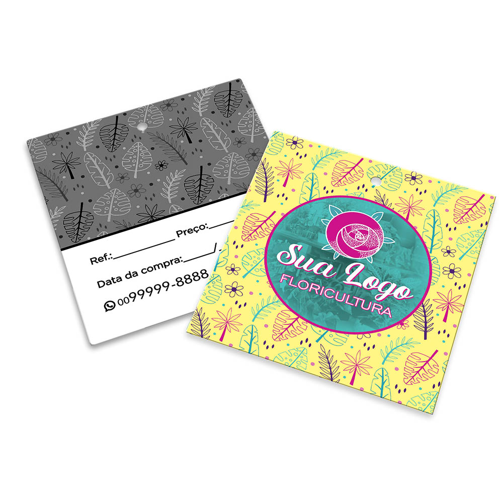 Frente colorida em CMYK e verso impresso só em preto (tons de cinza).