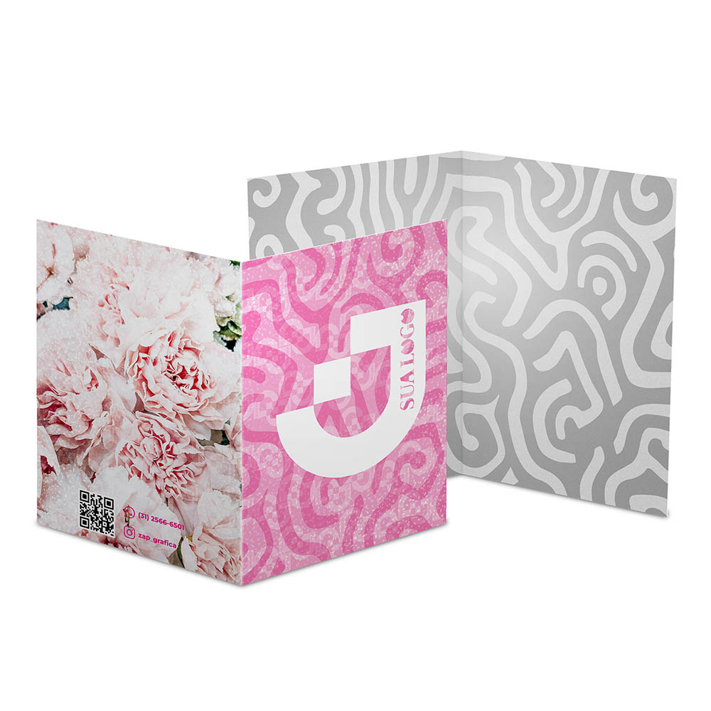 Frente colorida em CMYK e verso impresso só em preto (tons de cinza).