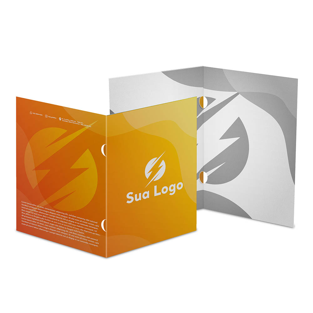 Frente colorida em CMYK e verso impresso só em preto (tons de cinza).