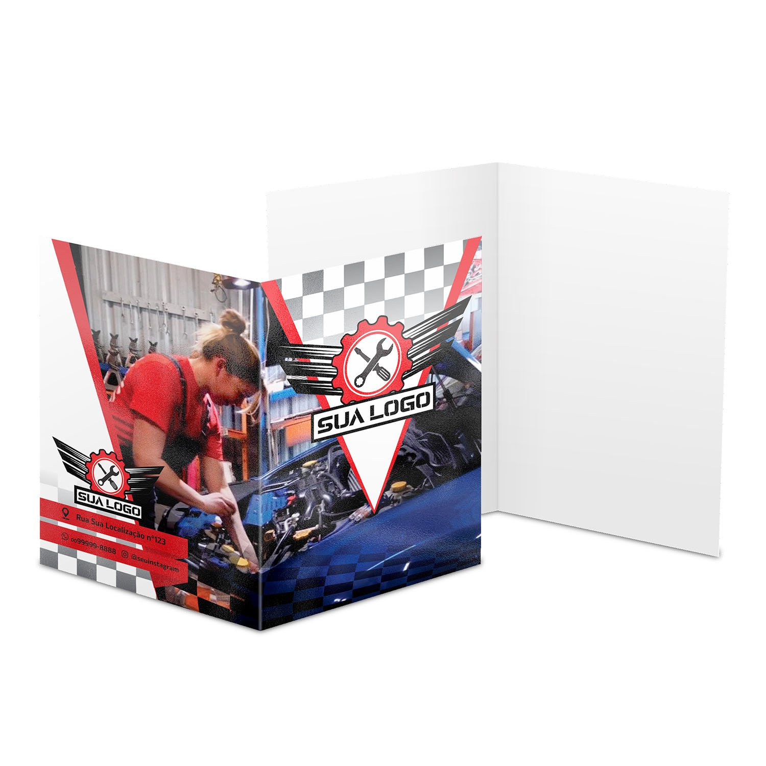 Impressão colorida em CMYK apenas na frente; o verso fica em branco.