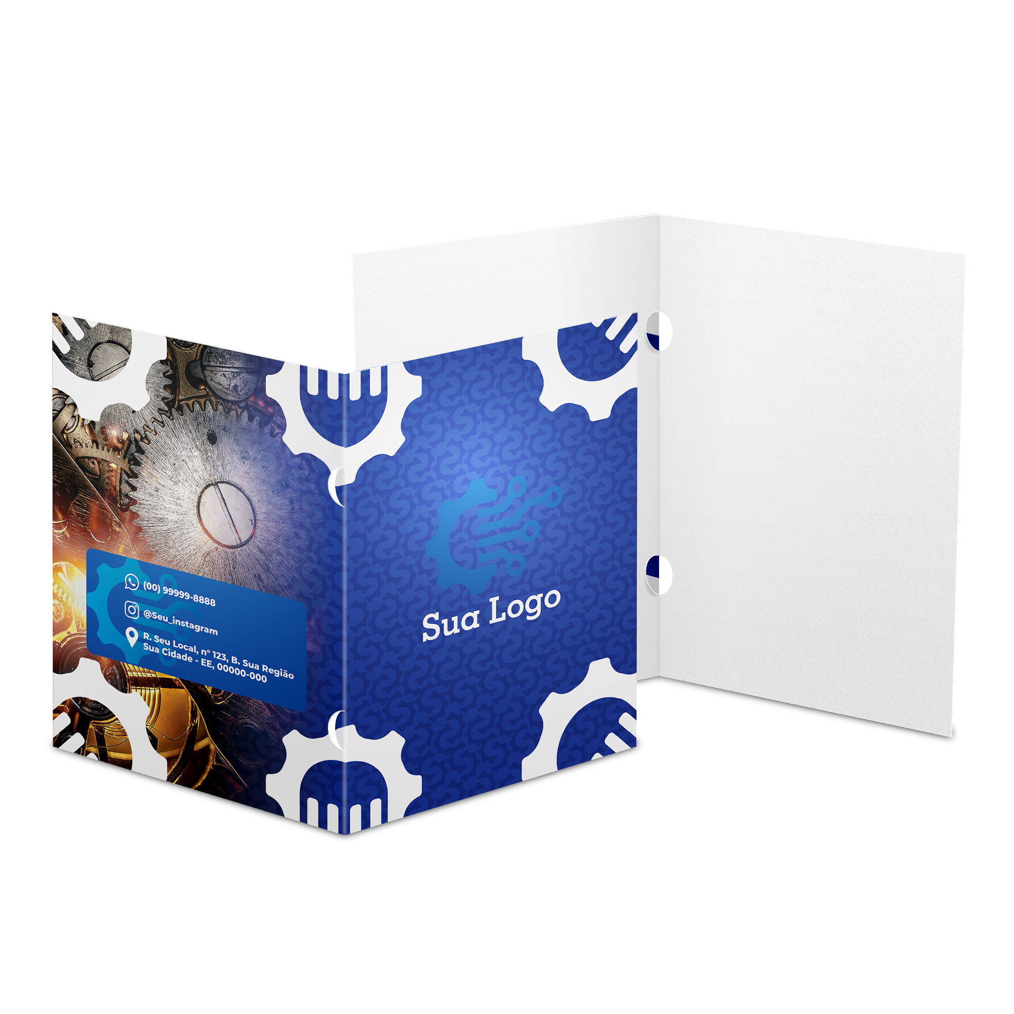 Impressão colorida em CMYK apenas na frente; o verso fica em branco.