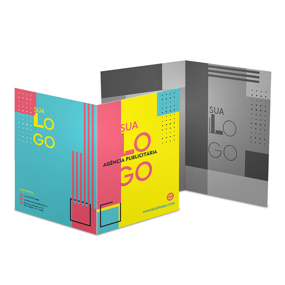 Frente colorida em CMYK e verso impresso só em preto (tons de cinza).
