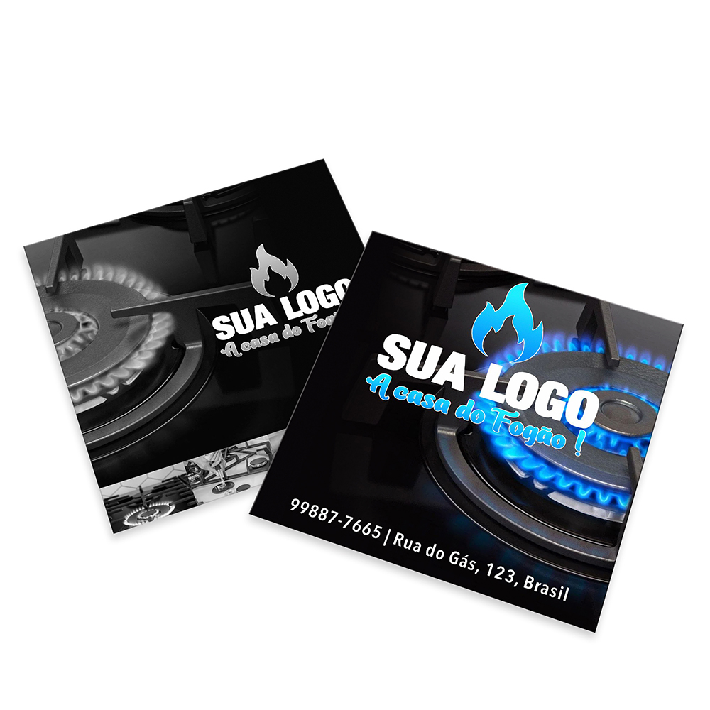 Frente colorida em CMYK e verso impresso só em preto (tons de cinza).