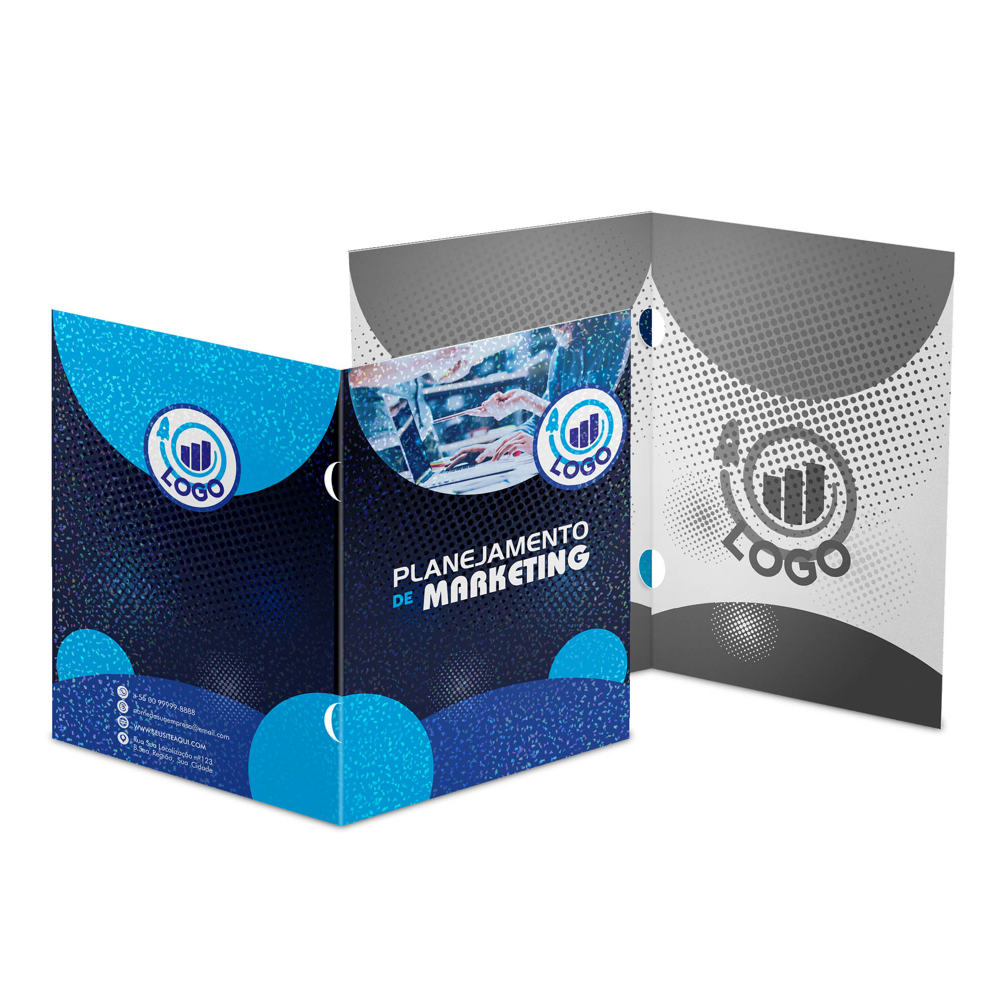 Frente colorida em CMYK e verso impresso só em preto (tons de cinza).