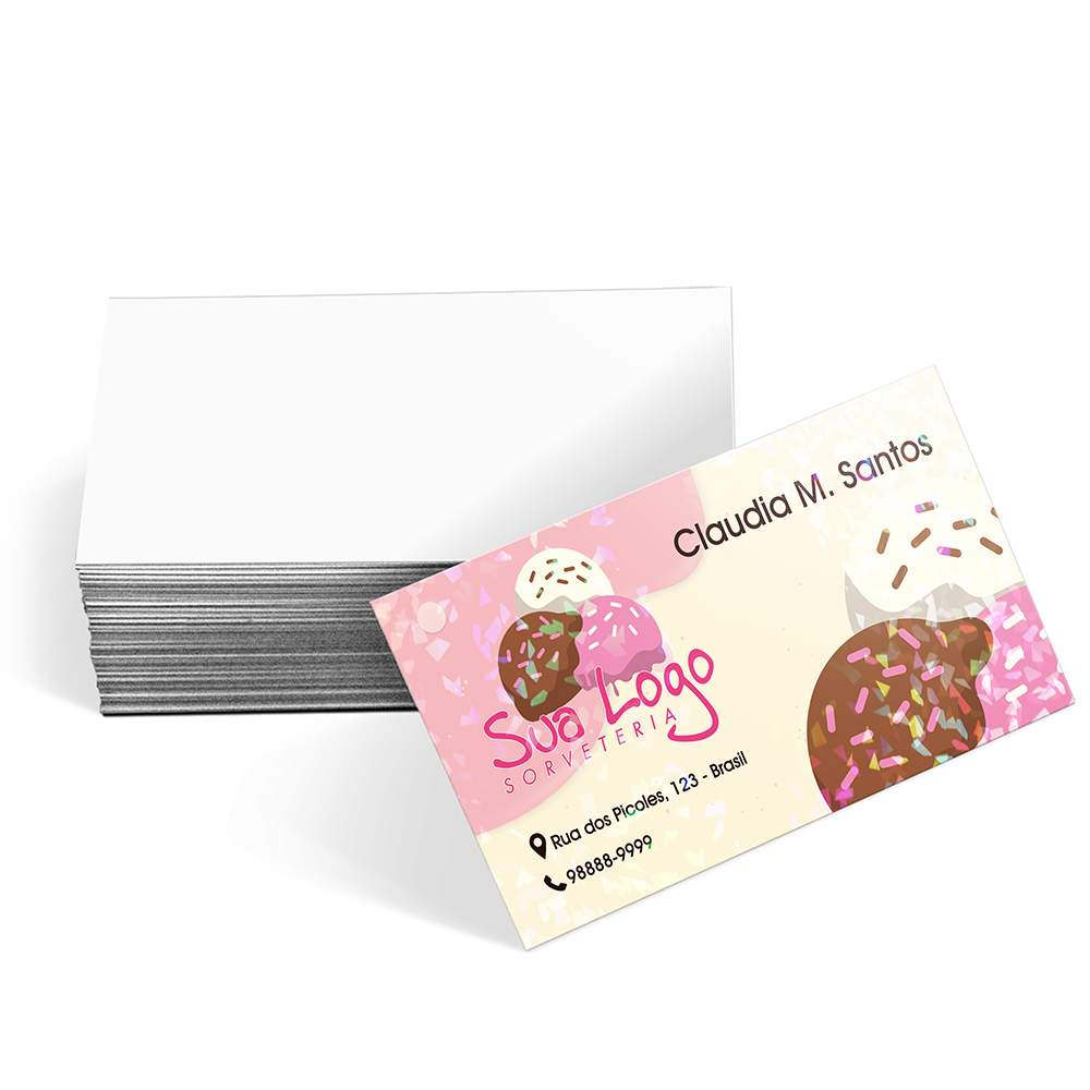 Impressão colorida em CMYK apenas na frente; o verso fica em branco.