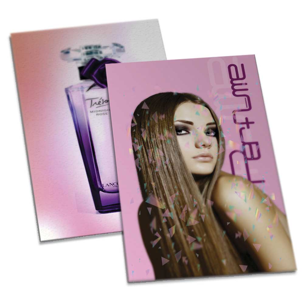 Impressão colorida em CMYK na frente e no verso.
