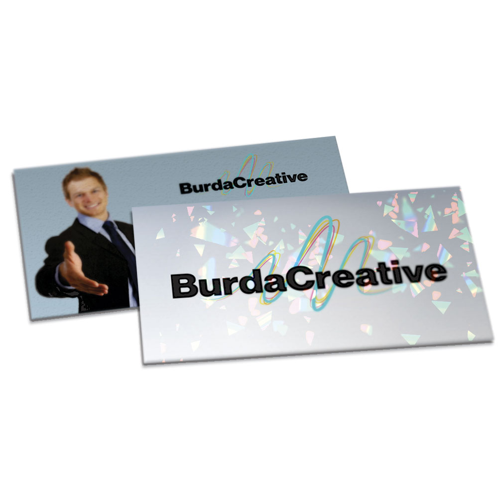 Impressão colorida em CMYK na frente e no verso.