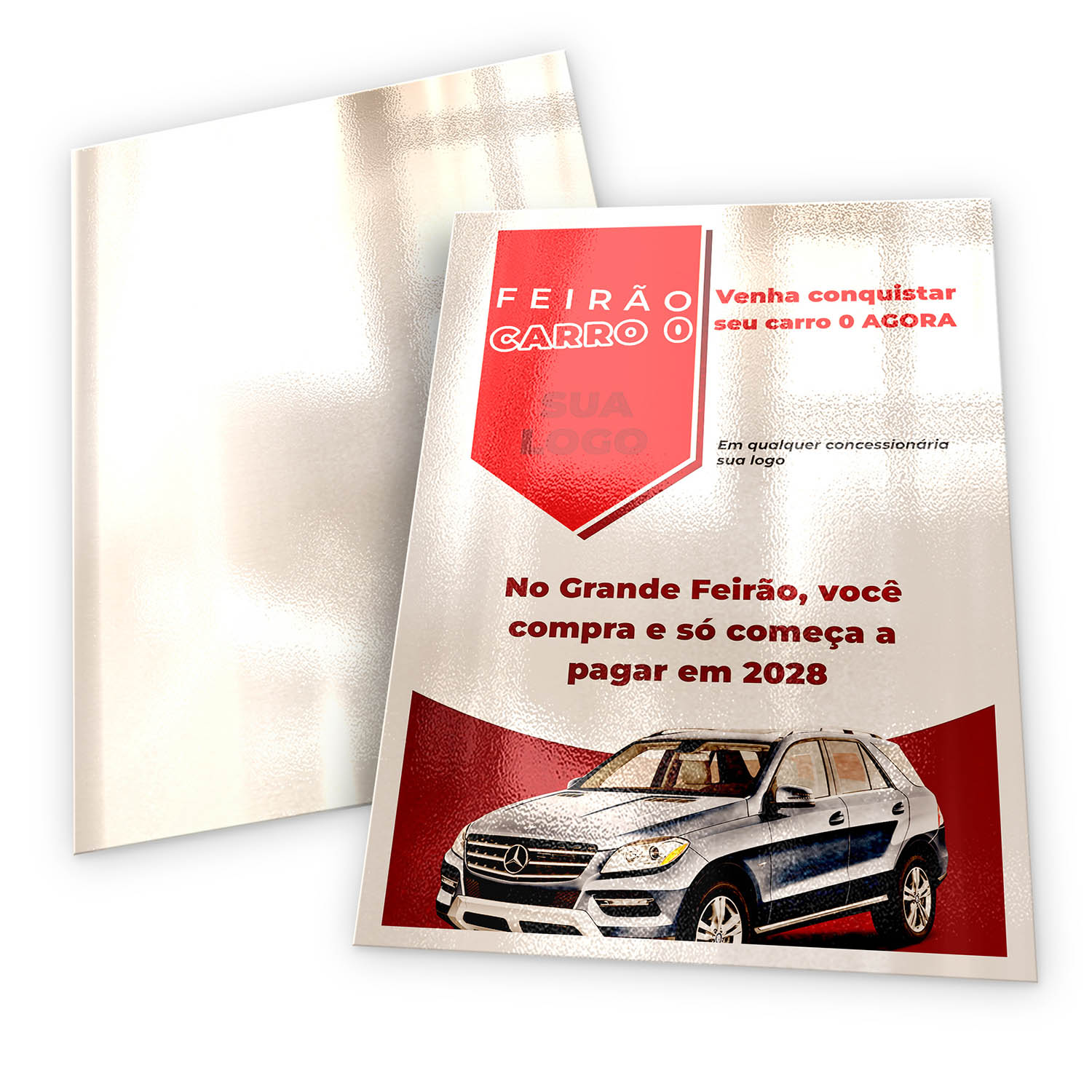 Impressão colorida em CMYK apenas na frente; o verso fica em branco.