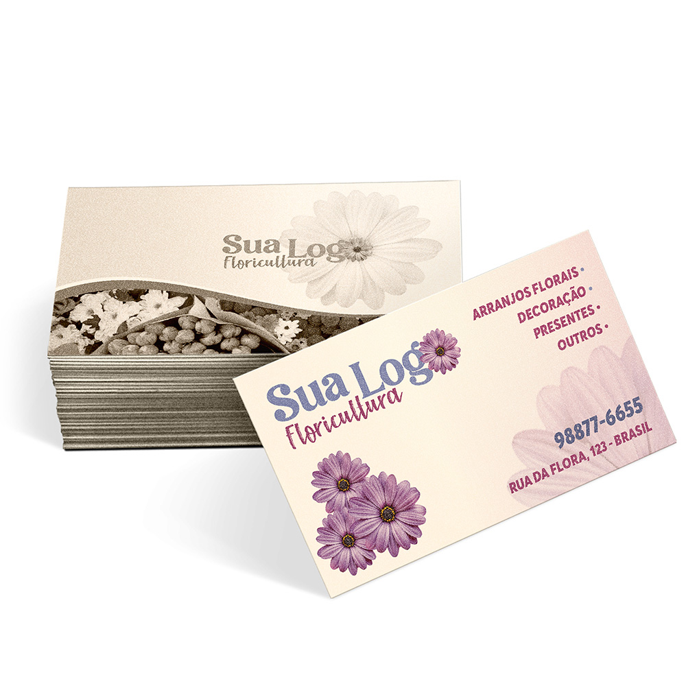 Frente colorida em CMYK e verso impresso só em preto (tons de cinza).