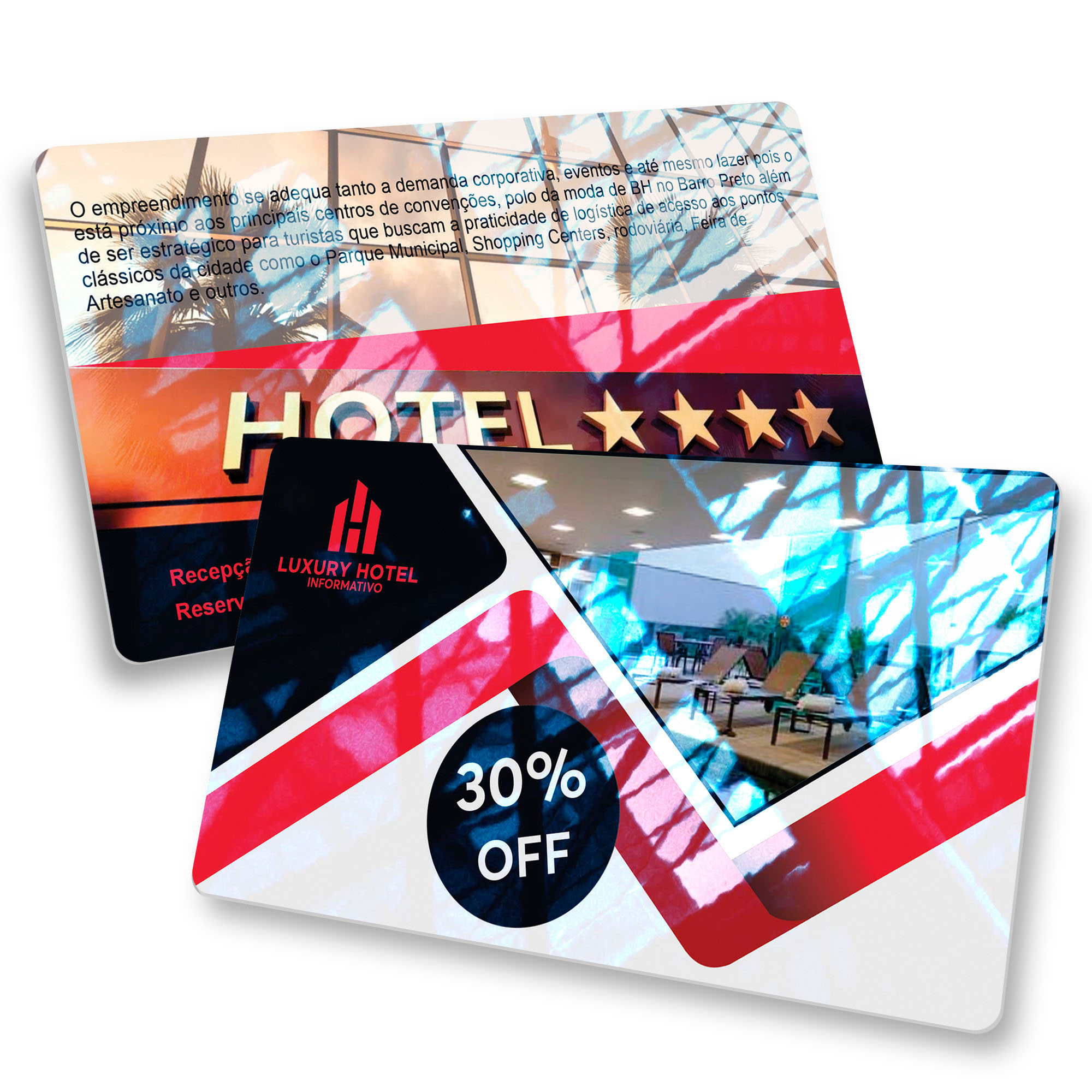 Impressão colorida em CMYK na frente e no verso.