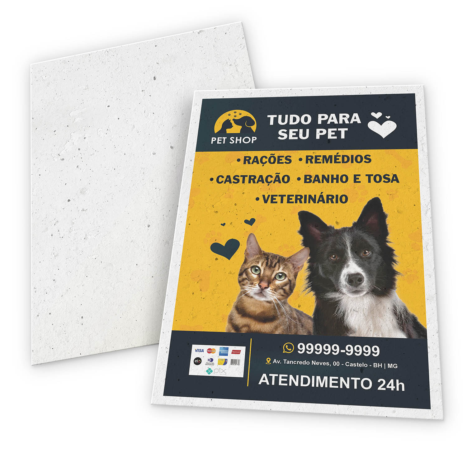 Impressão colorida em CMYK apenas na frente; o verso fica em branco.