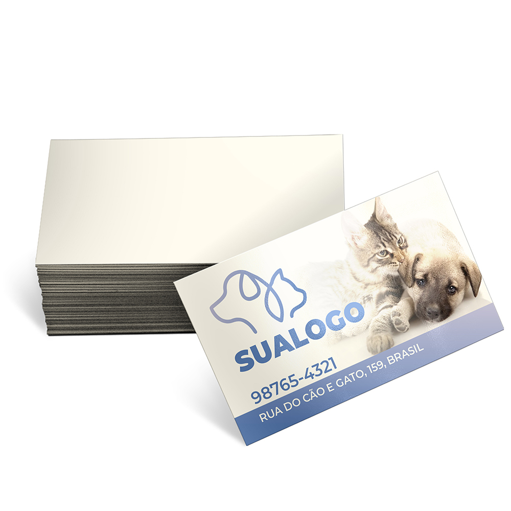 Impressão colorida em CMYK apenas na frente; o verso fica em branco.